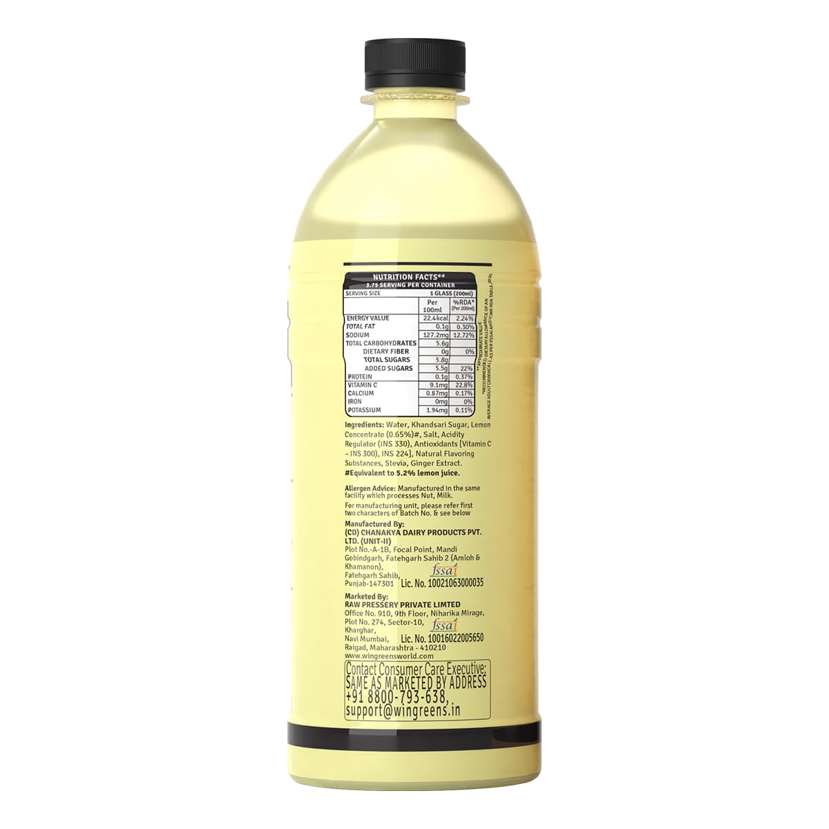 Ingredients: Water, Khandsari Sugar, Lemon Concentrate (0.65%), Salt, Acidity Regulator (INS 330), Antioxidants [Vitamin C - INS 300), INS 224], Natural Flavoring Substances, Stevia, Ginger Extract.